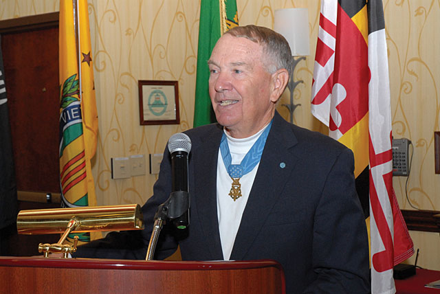 Veterans Helping Veterans: PHOTOS & STORY BY MICHAEL KEATING “We wanted it to be based on a theme,” North Carolina State Council President Joe Kristek said of the 23rd George C. Duggins Region 3 Conference held in Asheville March 28-31. In concert with a twelve-man planning committee, “we looked at the place in our lives. The important issues seemed to revolve around health care.” Finally, a unifying theme was decided upon: “Veterans helping veterans.” They took a lean and trim approach to the seminars. “We only had seven,” North Carolina Vice President Rossi Nance said. They decided against concurrent seminars, which often require attendees to run from the first part of one to the last part of another. “We let each one stand on its own merits,” he added. Discussion, then, both during the seminars and directly afterward, remained focused. The speakers were experts in their fields; they all lived and worked in Region 3; and they all had volunteered their time. Region 3made up of North Carolina, South Carolina, Kentucky, Tennessee, Virginia, West Virginia, Maryland, and the District of Columbiais the only VVA region that consistently produces conferences for members. The combined Region 8 and 9 conferences are the other exception. The conference dates were suggested by the host hotel, The DoubleTree Biltmore, whose staff couldn’t have been more gracious or helpful. “They said they could provide us the best rates on that week, so we took them,” Nance said. Unfortunately, those dates coincided with Vietnam Veterans Recognition Day, so there was competition from a NASCAR event in nearby Charlotte that anticipated 70,000 veterans, and the West Virginia State Council’s recognition event in Charleston. Nonetheless, three national officers attended: President John Rowan, Vice President Fred Elliott, and Treasurer Wayne Reynolds. The keynote speaker at the Opening Ceremonies was the soft-spoken and self-effacing Walter J. Marm, who received the Medal of Honor for his actions at the Ia Drang. During “a slugfest [that lasted] for three days,” he took out three NVA near a machine-gun site. Later, he exposed himself to enemy fire to pinpoint its location, then charged the nest and threw in a grenade that killed several more enemy. With his M-16 he shot four more NVA until he took a bullet in the jaw. “I’m no braver than anyone else here,” he said. “I’m just the caretaker of this medal.” In fact, he said, “some say it’s harder to wear the medal than to earn it.” Marm is one of eighty-one living MOH recipients. The main mission of the Congressional Medal of Honor Society is to “work with the youth” to build character. It is also committed to such veterans’ issues as PTSD and Agent Orange. Marm was followed by George E. Clark, a former Special Forces soldier in Vietnam with a life-consuming mission: to help the Montagnards. But his mission is not the product of detached altruism. It’s public: “The Montagnards were the best and most unwavering ally the U.S. had,” Clark said. And it’s private: “When I was hit, they jumped on my body so I wouldn’t get hit again.” Most Montagnards in the United Statesmore than eight thousandlive in North Carolina. Clark’s organization, Save the Montagnard People, works to resettle them, preserve their culture, and help adapt them to the broader American culture. He estimates that eleven hundred Montagnard children have gone through college. Long persecuted by the Vietnamese, who are different ethnically and practice different religions, the Montagnards made perilous escapes from their homelands. With the help of STMP and other organizations, they made their way to the United States. In the best of all worlds, they would prefer to stay in their native home in the Central Highlands. “They don’t want to come here,” Clark said, “but they don’t want to be slaughtered.” Only a fraction of their wartime numbers remains in Vietnam. After Clark spoke, Montagnard men and woman played instruments and danced, ultimately drawing Marm, NCSC Chaplain Craig Register, AVVA Region 3 Director Donna Crowell, and others out to dance with them. Later, representatives of the Eastern Cherokee Nation (who were also veterans) were presented to the Conference and to the Montagnards. In a spare but moving ceremony, these two displaced indigenous peoples exchanged gifts. The seminars were spread over a three-day period. AVVA North Carolina State Rep Pam Scheffer discussed survivor assistance. Debra Volkmer, the VISN 6 caretaker support coordinator, made two presentations, one on accessing caregiver support from the VA (for details, see www.caregiver.va.gov or call 855-260-3274). The other seminar was on vicarious traumatization, otherwise known as secondary PTSD. She approached the subject from psychological, physical, and spiritual perspectives. Anthony Musolino’s presentation was entitled, “Who Will Cash Your Last Check?” Mary Foster talked about future home health care, and Darlene Laughter discussed volunteer opportunities with the VA. North Carolina Cemetery Program Director Eli Panee presented an overview on veterans cemeteries. Region 3 Director Sara McVicker tended to VVA business, presenting a seminar entitled “Reporting,” in which she described the paperwork that chapters and state councils must file with the state, the federal government, and VVA national. Because filing requirements vary from state to state, McVicker provided a breakout of agencies and their email and street addresses for each of the Region 3 states. She stressed that all chapter officers and board members must know the filing requirements: It is foolish and dangerous to leave that responsibility with one person, she said. Later in the day McVicker held a Region 3 Director’s Meeting, in which she discussed the current business of the National Board of Directors and progress in resolving software problems. Saturday morning Ellie Co