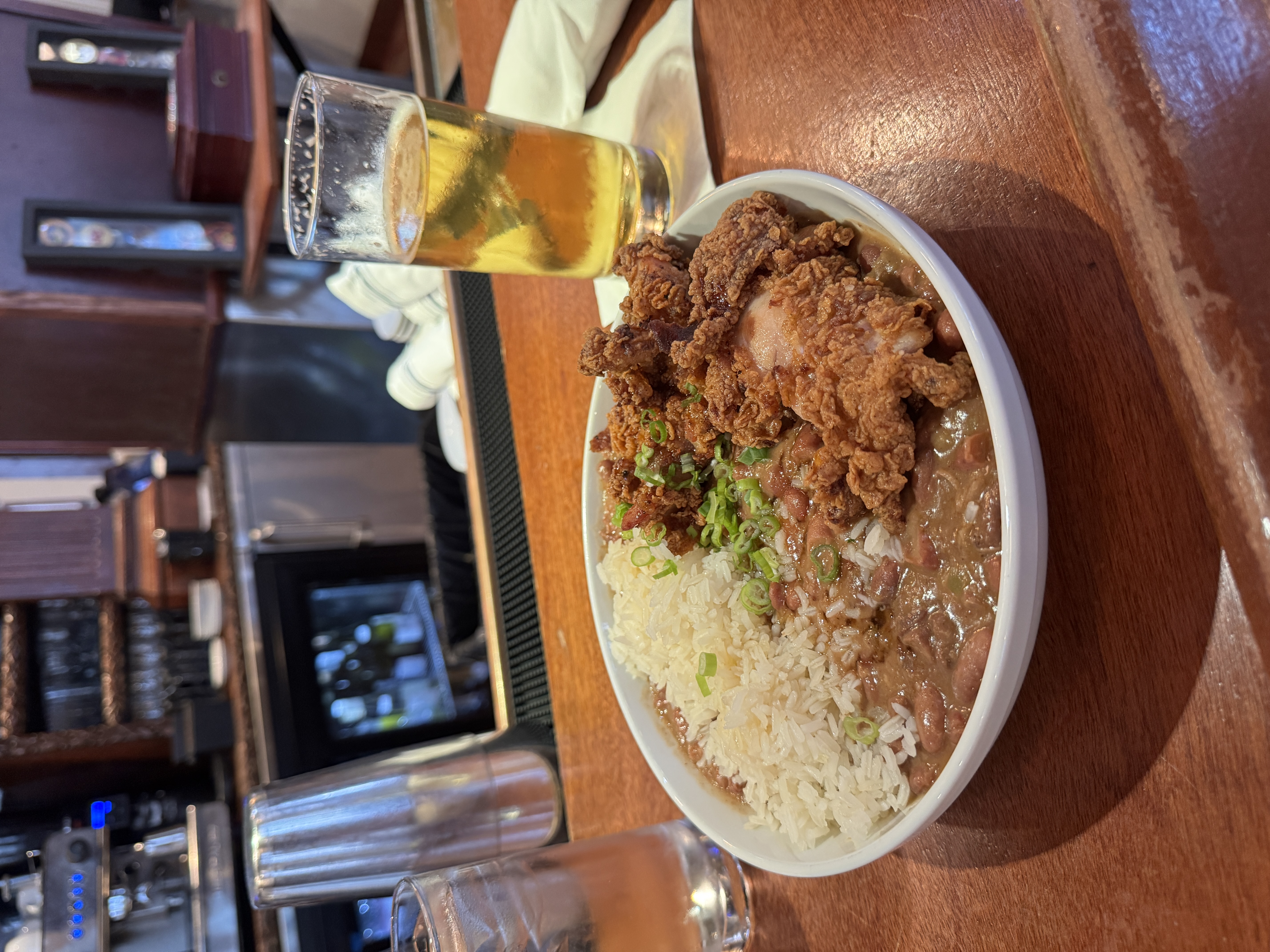 Luke (333 St. Charles Ave.): A more upscale option for a sit-down dinner, Luke is known for oysters, red beans and rice, and an impressive beer selection. Military memorabilia behind the bar adds a welcoming touch. Visit during happy hour for $1 oysters or try the red beans and rice ($26), served with two pieces of fried chicken with a sweet-and-spicy flavor.